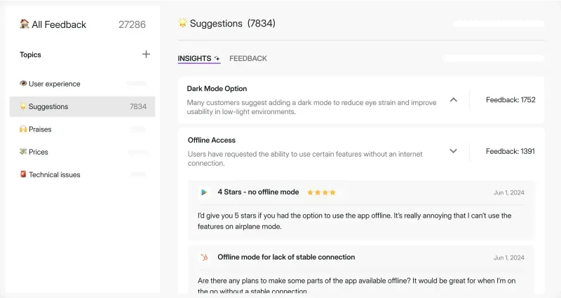 - Feedback Consolidation: Insights Hub gathers feedback from all your channels, eliminating data silos and giving you a complete picture of customer sentiment. 📊